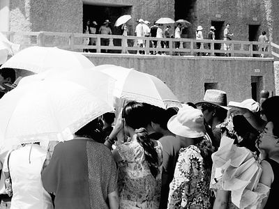 近年來,莫高窟面臨的旅游壓力空前巨大。從1979年正式向游人開放時(shí)起,每年來敦煌石窟旅游的人數(shù)迅速上升,今年估計(jì)將突破40萬人次。今年國慶“黃金周”期間,各地涌到敦煌、進(jìn)莫高窟參觀的游客總數(shù)即超過2萬人次。許多開放洞窟和狹窄棧道,都是人滿為患。超量游客進(jìn)入洞窟,使洞窟長期陷于“環(huán)境疲勞”狀態(tài),導(dǎo)致體質(zhì)逐漸惡化,并直接助長崖體及壁畫底仗中的氯化鈉聚積,催化莫高窟壁畫、塑像的已有病害。更有一些旅游者,還千方百計(jì)要觸摸這些古老珍寶。據(jù)統(tǒng)計(jì),暗中“動(dòng)手”者的比例高達(dá)3.9%。種種情況,構(gòu)成了對(duì)莫高窟文物的極大危害。