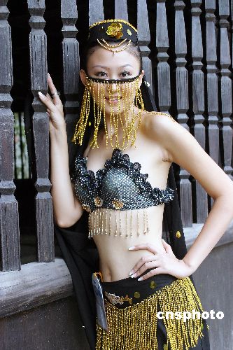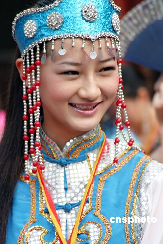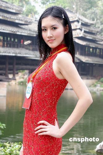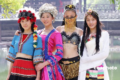 2004年10月17日,中國模特之星全國20個分賽區(qū)前三名的60名選手在南寧民族文物苑進行民族裝外景拍攝。駱文剛 攝
