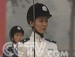 團(tuán)體操剛剛演練完,他們馬上打散隊(duì)形,用倒功組成了“55、盾牌和長(zhǎng)城”圖案,向國(guó)慶55周年和公安部建部55周年獻(xiàn)禮致敬。
