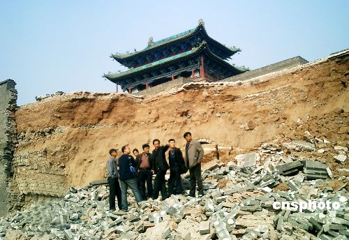 當地政府部門緊急在現場調查此事,研究維修方案。經過平遙縣文物部門的現場初步鑒定,此次城墻坍塌缺口長十七米,高十米,緊臨南城門。