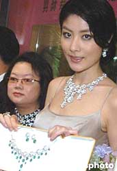 陳慧琳出席香港金至尊珠寶北角分店開幕典禮﹐并接受該店全新推出的秋冬鉆飾。作者:趙振清