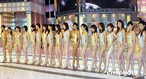 2004亞洲小姐競(jìng)選總決賽十月二十四日晚在香港演藝學(xué)院舉行,來(lái)自各國(guó)的十八位參賽佳麗爭(zhēng)奪是次大賽桂冠。圖為參賽佳麗身穿泳裝展示風(fēng)采。中新社記者:錢(qián)興強(qiáng)