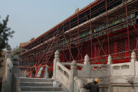 晉宏逵:對(duì)于1400名施工人員,一是對(duì)這些工人尤其是工長及他們的負(fù)責(zé)人,在進(jìn)入故宮之前都進(jìn)行培訓(xùn),我們叫做持證上崗。二是能夠進(jìn)入故宮的單位都是經(jīng)過招標(biāo)的,它們都擁有國家文物局頒發(fā)的一級(jí)文物建筑維修施工和設(shè)計(jì)證書。三是故宮和施工單位一起制定了一整套現(xiàn)場管理措施,包括人員、技術(shù)、材料進(jìn)出廠的管理等。通過這些管理手段來保證故宮維修的安全。四是施工單位都是利用傳統(tǒng)方法來進(jìn)行施工的,能夠保證維修工作不改變建筑原狀。另外從技術(shù)措施上,我們也想了很多辦法。比如說對(duì)比較重要的墻,他們對(duì)每一塊磚都做了編號(hào)。在這些建筑隊(duì)伍進(jìn)場之前,我們已經(jīng)也做了充分的考慮,不僅僅要保證建筑的安全,還要保證游客的安全,因?yàn)槲覀兊木S修是在不關(guān)閉多個(gè)館的情況下進(jìn)行的,我們劃定了比較嚴(yán)格的區(qū)域進(jìn)行管理。施工工人只在上班時(shí)進(jìn)入故宮,不能在故宮居住。