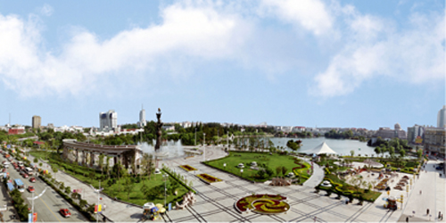 廣場整體上為北高南低、西高東低,強調(diào)其向水性和向陽性。人們既可以在這里聽音樂會,又可以在林間小憩、水中嬉戲,還可以在地下商場購物,了解蕪湖的人文歷史、廣場與大、小鏡湖、中山路步行街一起,組成了一個集觀光、休閑、購物、娛樂于一體的城市中心旅游區(qū)。