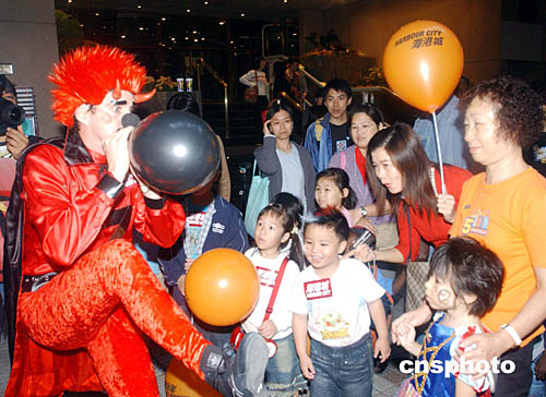 巨人嘩鬼在游客絡(luò)繹不絕的星光大道與游客嬉戲,吸引途人好奇目光。