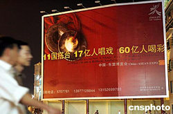 十一月二日夜,兩位市民走過(guò)廣西自治區(qū)首府南寧街頭的巨幅中國(guó)-東盟博覽會(huì)宣傳畫。十一月三日,由中國(guó)和東盟十一國(guó)搭臺(tái)、十七億人唱戲、全球六十億人喝彩的首屆中國(guó)-東盟博覽會(huì)在廣西南寧舉行,將有兩萬(wàn)多名海內(nèi)外賓客出席這一盛會(huì)。中新社記者:武仲林