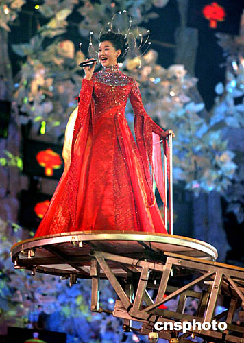 中國(guó)內(nèi)地著名歌星宋祖英在晚會(huì)上表演傾倒歌迷。作者:武仲林