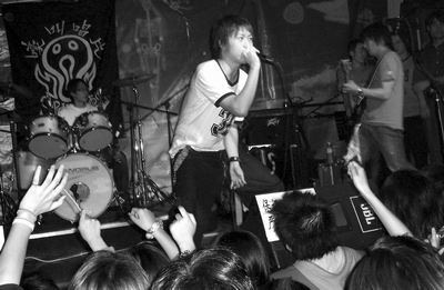 因為電壓不穩(wěn)燒掉了設(shè)備,五月天在新豪運酒吧的萬圣節(jié)演出夜(10月31日)拖延了很久才上場,這讓下面的歌迷頗有些不耐煩。但他們最終還是成功地調(diào)動了大家的情緒,甚至一位歌迷還試圖跳上舞臺湊熱鬧———當(dāng)然最后他還是被酒吧的保安拖了下去。演出結(jié)束的時候已經(jīng)是凌晨近2點,8小時之后,五個明顯沒有睡醒的樂隊成員接受了我的采訪。