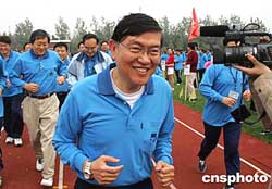 著名華商、中芯國(guó)際總裁張汝京參加上海中芯國(guó)際學(xué)校舉行的“親子運(yùn)動(dòng)會(huì)”。該校目前有來自世界十八個(gè)國(guó)家和地區(qū)的五百多學(xué)生就讀,其中臺(tái)商子女占百分之六十以上。