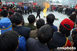 圖:北京海淀警方街頭指導市民滅火技能
