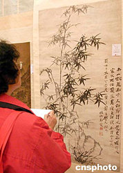 清代鄭燮(號(hào)板橋)名作《竹石蘭蕙圖》十一月七日在北京舉行的嘉德秋季拍賣(mài)會(huì)上,以五百三十九萬(wàn)元人民幣的高價(jià)被成功拍賣(mài)。當(dāng)天舉行的嘉德中國(guó)古代書(shū)畫(huà)專(zhuān)場(chǎng)拍賣(mài)會(huì)總成交額突破一億元人民幣。圖為拍賣(mài)預(yù)展時(shí)觀眾欣賞《竹石蘭蕙圖》。中新社記者:張煒