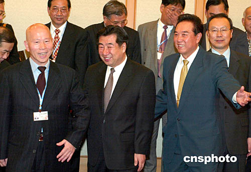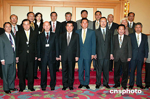 國務(wù)院副總理回良玉、國臺(tái)辦主任陳云林、農(nóng)業(yè)部部長(zhǎng)杜青林,十一月八日在北京中南海會(huì)見臺(tái)灣前民進(jìn)黨主席許信良及其率領(lǐng)的“兩岸農(nóng)業(yè)交流訪問團(tuán)”。中新社記者:滿會(huì)喬