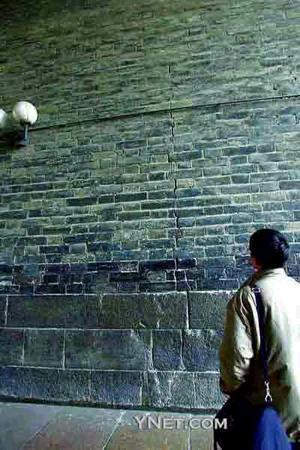 昨天下午,記者在正陽門西北角看到,近9米高的城墻上確實有一道裂縫。記者目測后估計裂縫長約6米,但寬不過半厘米。裂縫從城墻頂部開始向下分段延伸,在接近地面處消失。住在附近的居民說,他們也是最近才發(fā)現(xiàn)城樓西北角的這道裂縫。不過居民們說,在城樓的門洞里還有大小不等的幾道裂縫。