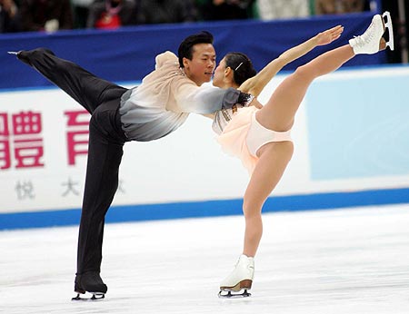 中國(guó)另一對(duì)組合、在美國(guó)站大獎(jiǎng)賽上一鳴驚人奪得自己首個(gè)大獎(jiǎng)賽冠軍的張丹、張昊,今天也穩(wěn)定發(fā)揮,排在第二位。盡管“功力”還沒有達(dá)到申雪、趙宏博那般爐火純青,但兩人最近問鼎世界冠軍也標(biāo)志著中國(guó)雙人滑已經(jīng)有了集團(tuán)作戰(zhàn)的實(shí)力,加上去年世青賽亞軍獲得者丁楊、任重飛的助陣,應(yīng)該說明天中國(guó)隊(duì)奪取這枚金牌的保險(xiǎn)系數(shù)很高。