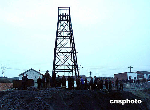 圖為十二日上午當(dāng)?shù)卮迕裨趪^發(fā)生爆炸的礦井。