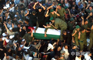 中新網(wǎng)11月12日電 綜合消息,當(dāng)?shù)貢r(shí)間15時(shí)17分巴勒斯坦民族權(quán)力機(jī)構(gòu)主席阿拉法特的遺體運(yùn)抵約旦河西岸城市拉馬拉。靈柩抵達(dá)拉馬拉官邸后,穆斯林神職人員誦讀《可蘭經(jīng)》。隨后,阿拉法特被葬在官邸內(nèi)綠樹(shù)環(huán)繞的白色大理石墓中。