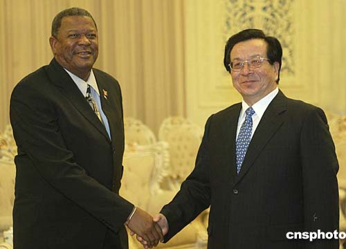 曾慶紅今天下午會見了到訪的安提瓜和巴布達總理斯潘塞。他說,根據(jù)中方倡議,“中國-加勒比經(jīng)貿(mào)合作論壇”首屆部長級會議將于明年二月在牙買加舉行,中國愿與各方共同努力,使會議取得成功,以推動中國同包括安巴在內(nèi)的加勒比國家的經(jīng)貿(mào)關系的發(fā)展。