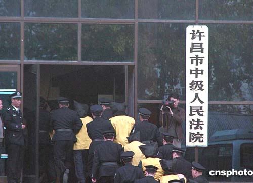 被告人被押解進(jìn)入法庭。作者:史寶銀 法庭外聚集大批群眾。作者:史寶銀