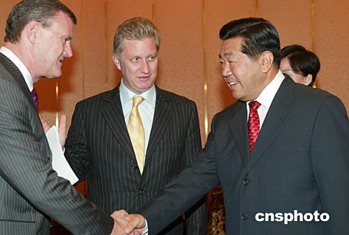 全國政協(xié)主席賈慶林十一月二十二日在北京會(huì)見比利時(shí)王儲(chǔ)菲利普(中)一行,菲利普王儲(chǔ)此次偕同近500人的大型經(jīng)貿(mào)代表團(tuán)訪華。中新社記者:滿會(huì)喬