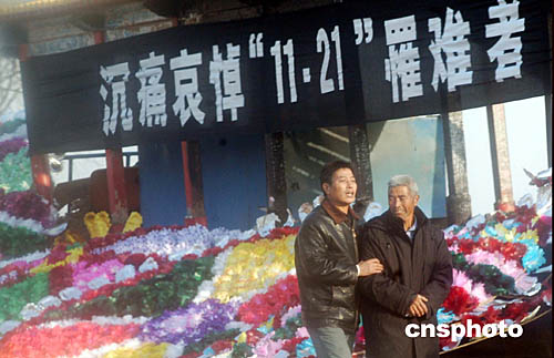11月23日下午,11.21包頭空難遇難者家屬在飛機(jī)失事現(xiàn)場搭設(shè)的靈堂前悼念親人。中新社記者:張宇