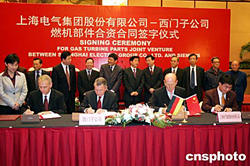十一月二十三日,上海西門子燃?xì)廨啓C(jī)部件有限公司成立簽約儀式在滬舉行。該公司是由西門子公司和上海電氣集團(tuán)股份有限公司共同投資五千五百萬(wàn)歐元合作成立的。圖為簽約儀式現(xiàn)場(chǎng)。作者:湯彥俊