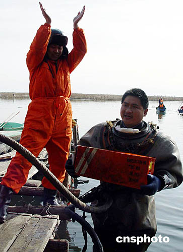 在打撈現(xiàn)場的中國交通部救撈局官員介紹說,第二個黑匣子是由煙臺打撈局的邢思浩打撈出水的。今天上午十一時四十分左右,第一個黑匣子已被包鋼的潛水員劉鵬找到。