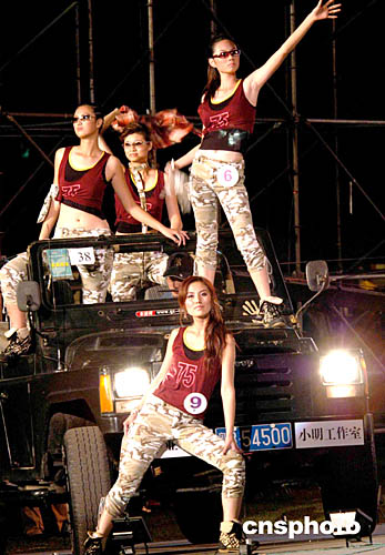 第二屆中國(廣州)國際汽車展覽開幕式晚會暨首屆全國汽車模特大賽總決賽,二十三日晚在廣州天河體育場隆重舉行。來自全國九個分賽區(qū)的四十五名模特選手角逐“十佳”及冠亞季軍。作者:劉衛(wèi)勇