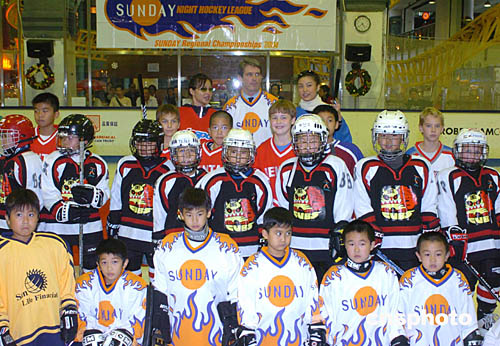 2004年亞太區(qū)少兒冰球賽25日在香港西九龍中心舉行﹐來自北京﹑新加坡﹑美國﹑加拿大﹑英國﹑澳洲等14支隊150多名選手參加本次比賽﹐中新社記者:趙振清