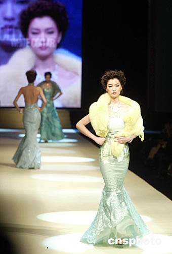 十一月二十五日,中國(guó)國(guó)際時(shí)裝周在北京中國(guó)大飯店舉行閉幕儀式,名模杜鵑在閉幕式上進(jìn)行時(shí)裝展示表演白領(lǐng)品牌的晚裝。中國(guó)國(guó)際時(shí)裝周在一周的時(shí)間內(nèi),連續(xù)上演了三十多場(chǎng)專(zhuān)業(yè)時(shí)裝流行趨勢(shì)發(fā)布。作者:盛佳鵬