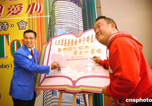 國(guó)際獅子總會(huì)港澳303區(qū)與香港演藝人協(xié)會(huì)將于2005年元旦聯(lián)合主辦慈善樓梯步行比賽活動(dòng),11月29日國(guó)際獅子總會(huì)港澳區(qū)總監(jiān)楊偉誠(chéng)與香港演藝人協(xié)會(huì)會(huì)長(zhǎng)曾志偉出席簽署儀式。作者:洪少葵
