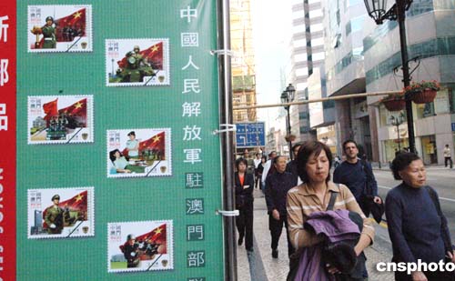 澳門郵政局將于十二月一日發(fā)行“中國人民解放軍駐澳部隊”郵品,該新郵品反映了駐澳部隊依法駐軍,從嚴(yán)治軍,苦練精兵,熱心公益,樹立了威武之師、文明之師的良好形象。作者:梁永強