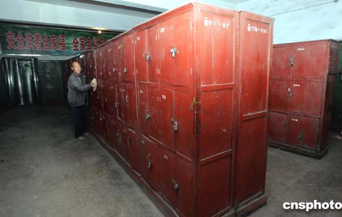 12月1日,陜西銅川礦務(wù)局陳家山煤礦搶險救援指揮部確認(rèn)井下礦工已經(jīng)沒有生還的可能,161名礦工可以確認(rèn)全部遇難。當(dāng)日下午,一名保管員在礦工浴池細(xì)心擦拭部分遇難礦工下井前存放衣物的更衣箱,等待他們的親屬認(rèn)領(lǐng)。作者:任晨鳴
