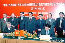 十二月一日晚,廣州市市長(zhǎng)張廣寧與正在廣東訪(fǎng)問(wèn)的吉爾吉斯斯坦總理尼古拉·塔納耶夫,簽署關(guān)于廣州與吉爾吉斯斯坦首都比什凱克建立友好合作交流城市的備忘錄。作者:劉衛(wèi)勇