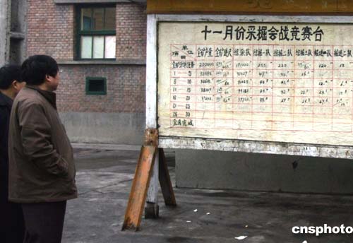 十二月二日下午,連續(xù)發(fā)生新的瓦斯爆炸、遇難礦工生還無望、井下搜救全面停止的壞消息使陜西銅川礦務(wù)局陳家山煤礦籠罩在悲痛、無望、凝重、憤怒的氣氛中。舉目四望,礦區(qū)內(nèi)處處可見的宣傳牌與當(dāng)今的氣氛形成極為不和諧的對比。其中該礦十一月采煤競賽臺告示牌,清晰記錄了發(fā)生瓦斯爆炸事故前的一段歷史。作者:任晨鳴