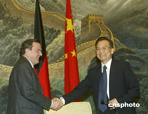 溫家寶是在結(jié)束與正在中國進(jìn)行工作訪問的德國總理施羅德的會談后對中外記者作上述表示的。