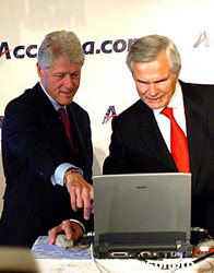 大病之后的美國前總統(tǒng)克林頓前往助陣,并和ACCOONA公司董事會(huì)主席?斯·法伊弗(右)一起操作搜索引擎。