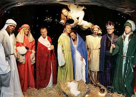 倫敦蠟像館重構的耶穌誕生場景中,貝克漢姆及維多莉亞居中,站在耶穌身後,身邊尚有貌似英國首相布萊爾、菲臘親王及美國總統(tǒng)布什的東方三博士,而貌似好萊塢影星格蘭特、山姆杰克遜及清談節(jié)目名主持格雷姆諾頓的牧羊人。向以性感著稱的澳洲歌星Kylie Minogue,則成了貝克漢姆夫婦頭頂上飛舞的天使。