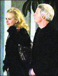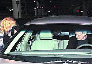 當(dāng)晚,身著藍色毛衣和黑色休閑外套的史蒂夫用他的林肯轎車載著迷人的妮可前往他的錄音棚,車子一到達,妮可就迫不及待地鉆進去。妮可系著一條花絲巾,穿著一件黑色西服上衣,下車前,妮可不忘左張右望,看了又看。發(fā)現(xiàn)有人拍照時,機警地低下頭并用手遮臉,但神情并不慌張,臉上倒掛著甜蜜的笑。一路上兩人談?wù)勑π,廝守3個小時后,史蒂夫才送妮可回家,兩人牽手下車,朝妮可家中走去。