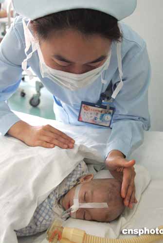 上海醫(yī)護(hù)人員在精心照料患兒。作者:潘索菲