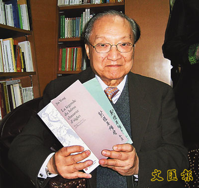 中新網(wǎng)12月10日電 據(jù)香港文匯報(bào)報(bào)道,香港著名武俠小說(shuō)作家查良鏞(金庸)首部翻譯成法文的《射雕英雄傳》于較早前面世,在香港唯一出售該本小說(shuō)的書局昨晚特別舉行酒會(huì),并邀得查良鏞出席,為讀者在小說(shuō)上簽名。