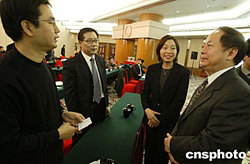 連續(xù)兩日舉辦的商務(wù)部首期服務(wù)外包培訓(xùn)班學(xué)術(shù)交流氣氛濃厚,許多成員借此機(jī)會(huì)向?qū)<覍W(xué)者請(qǐng)教咨詢。十二月十日,富士施樂(中國)有限公司副總裁李濟(jì)華(右)、北京博思商通資訊有限公司董事長(zhǎng)曾松(左二)與商務(wù)部有關(guān)人員一起交流。中新社記者:任海霞