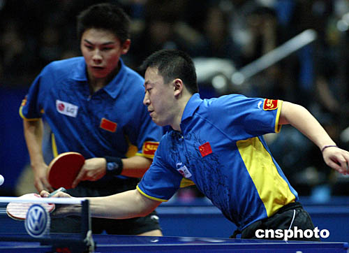 也許是因為都惦記著女單決賽,郭躍和牛劍鋒在女雙決賽中發(fā)揮欠佳,敗在雅典奧運會冠軍王楠/張怡寧拍下。