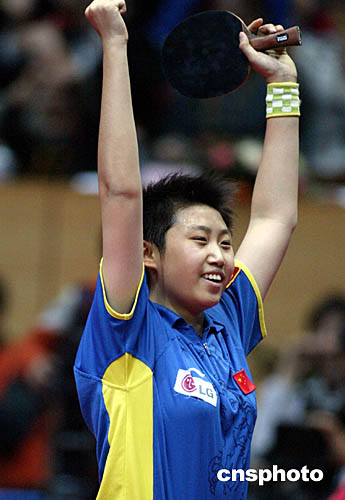 十二月十二日,年僅十六歲的小將郭躍在北京舉行的大眾汽車二零零四年國際乒聯(lián)職業(yè)巡回賽總決賽女單半決賽中戰(zhàn)勝牛劍鋒,獲女單冠軍。中新社記者:武仲林