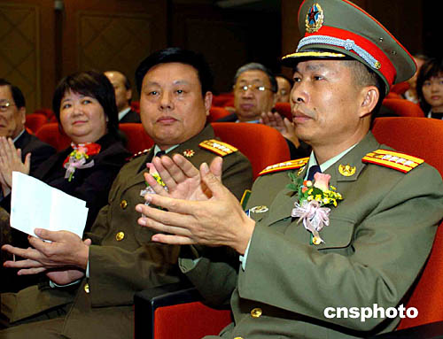 《紅五星·白蓮花》在澳門濠江中學(xué)隆重舉行首映式,駐澳門部隊(duì)副司令員黃文科大校(右)參加了首映式儀式。