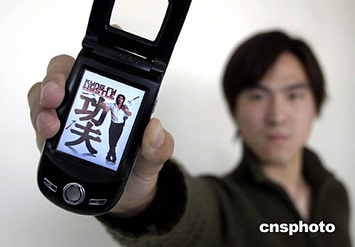 周星馳新片《功夫》即將于12月23日在中國內(nèi)地上映,而中國內(nèi)地的周星馳影迷已經(jīng)可以通過手機(jī)提前欣賞電影《功夫》。中國最大的手機(jī)上網(wǎng)內(nèi)容服務(wù)提供商“空中網(wǎng)”斥資買斷《功夫》的中國地區(qū)獨(dú)家電信增值業(yè)務(wù)版權(quán),其中包括《功夫》視頻片段和花絮、電影劇照、海報、音樂、對白、音效、劇情等無線版權(quán)。中新社記者:張煒