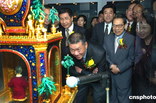 行政長官何厚鏵看得特別仔細(xì),不時(shí)問工作人員這是什么國家制造的,是哪一年流入中國。在一座英國十八世紀(jì)出產(chǎn)的銅鍍金升降塔鐘前,何特首問身旁的故宮博物院的李副館長,這升降塔如果零件壞了怎么辦?李副館長說,這都是手工制品很精細(xì),現(xiàn)在壞了英國也找不到做零件的師傅,所以很少開動(dòng)。何特首表示這些珍品要好好地保護(hù)。
