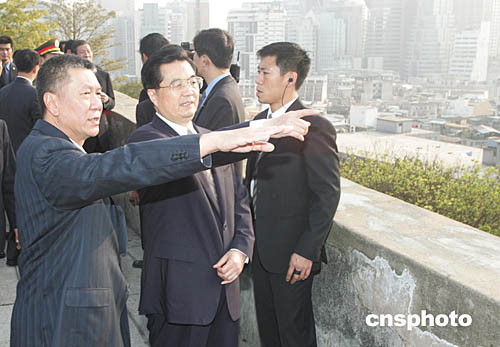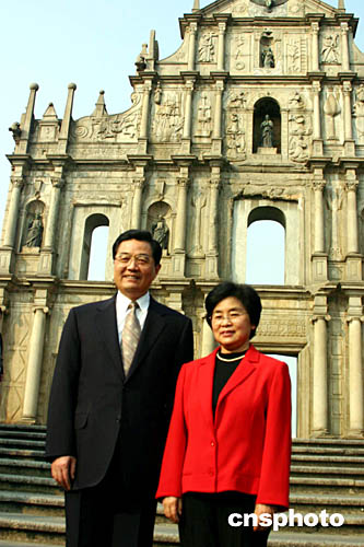 今天下午,甫抵澳門的胡錦濤出席西灣大橋落成典禮后,隨即前往參觀澳門著名景點(diǎn)大三巴、澳門博物館、大炮臺(tái)。