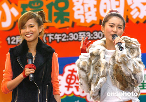 香港流行音樂組合2R19日在香港馬鞍山中心舉行的迎接圣誕活動(dòng)上獻(xiàn)歌。中新社記者:趙振清