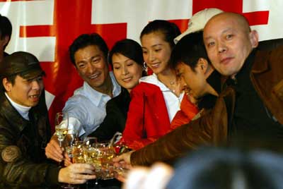 中新網(wǎng)12月21日電 據(jù)北京娛樂信報報道,昨(20)晚,為了慶祝《天下無賊》票房突破8000萬元大關(guān),主創(chuàng)馮小剛、劉德華、劉若英、葛優(yōu)、李冰冰、王寶強(qiáng)、尤勇、張涵予等眾明星在東方新世紀(jì)影城大擺慶功宴。