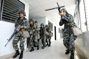 整個演習(xí)分為兩個階段進行。第一個階段是中級和高級軍官在指揮所里用電腦進行戰(zhàn)爭模擬,完全是虛擬世界的真實戰(zhàn)爭;第二個階段則是實兵演習(xí),主要是演練特種部隊如何應(yīng)對滲入后方的敵人。
